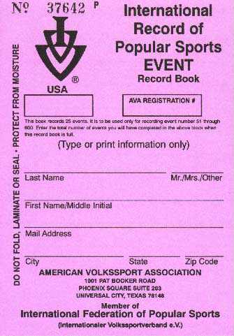Awards And don't forget to get this year's banner to display all your event pins on. Only $12 and made of real leather! A limited supply will be available at events and we can reorder if we run out. IVV Achievement Awards The Internationaler Volkssportverband (IVV) has established an incentive award program to encourage regular participation in IVV events. There are two types of awards, each having specific levels of achievement. An IVV record book is used to collect certification stamps needed for each level of achievement. When an achievement level is reached, the IVV awards a certificate, embroidered cloth patch and hat pin. The IVV record books currently cost $6 (which covers the award elements) and are available at all events. These books are valid indefinitely and are honored at any IVV sanctioned Folkssport event worldwide. Distance and Event Record Books are available at most events. IVV-AVA Credits can be earned for Distance walked (biked, skied) AND for the number of events in which you participate. These credits are recognized worldwide as symbols or achievement. They count toward acquisition of International Achievement Awards. Each type of credit is recorded upon completion of the event by a rubber stamp in a special Distance and/or Event Record Book. Event credit for each walk may be earned daily. There is no limit on the Distance credit that may be earned for any of these events, and you are encouraged to participate as much as you desire. At each event, a charge of $4 includes the IVV credit stamp applied in either or BOTH books. After completing a specified number of events or distance to reach an award level, your achievement will be recognized by the AVA national office with an award pin, patch and certificate at no additional charge. All events sponsored by NSTT are sanctioned by the AVA in the IVV and eligible for international achievement credit. Event awards are given after participating in 10, 30, and 50 events. After 50 events, awards are given for every 25 events until 600 events have been completed. After 600 events, awards are given for every 50 events. Distance awards are given after completing 500 kilometers until the participant has completed 8000K. After 8000K awards are given for every 1000K completed. |